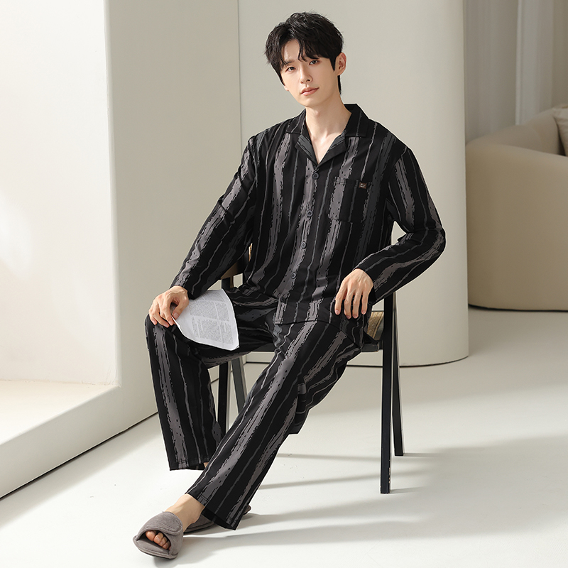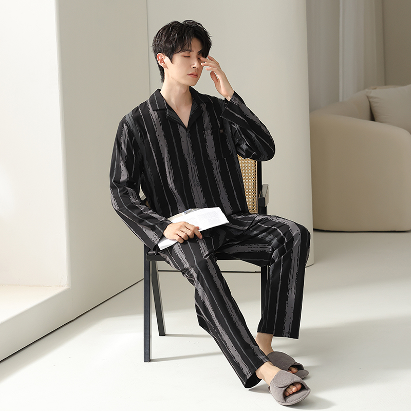 睡衣春秋款 青年家居服套装 圆领套头夏季 秋冬大码 薄长袖 莫代尔男士