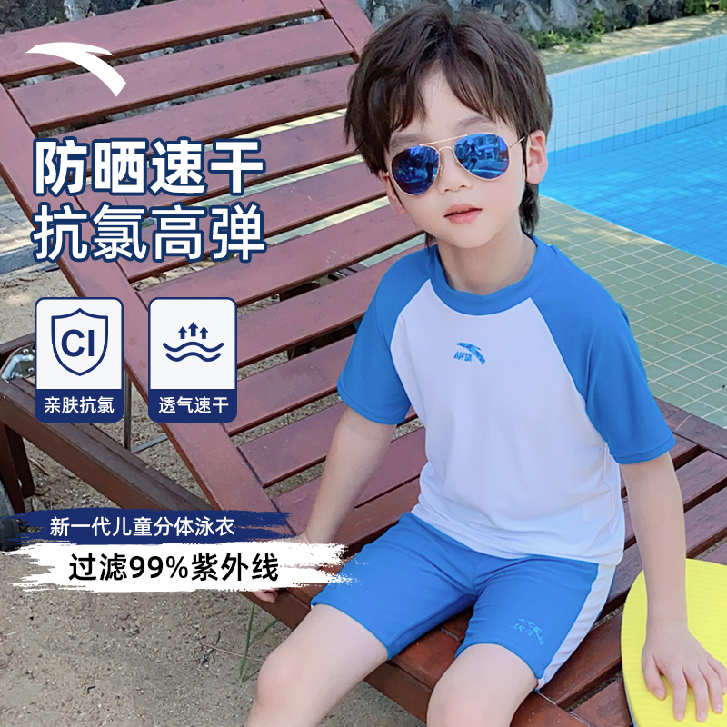 安踏儿童泳衣男童2025新款 中大童分体速干青少年专业训练游泳衣夏