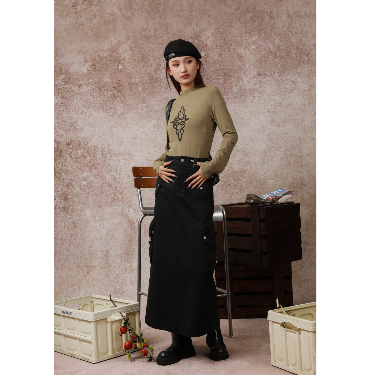 辣妹修身 打底衫 显瘦上衣 T恤女春秋内搭短款 设计感小众正肩V领长袖