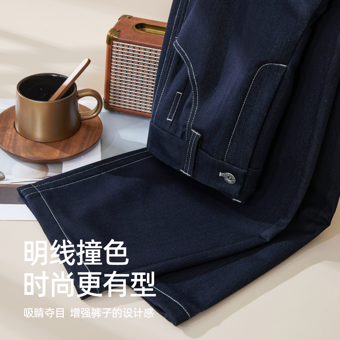 新款 2025秋季 宽松窄版 阔腿男装 美特斯邦威男士 直筒休闲裤 牛仔裤