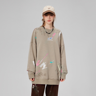 查尔斯桃心假两件衬衫 设计感拼接宽松休闲情侣上衣 领卫衣男春秋季