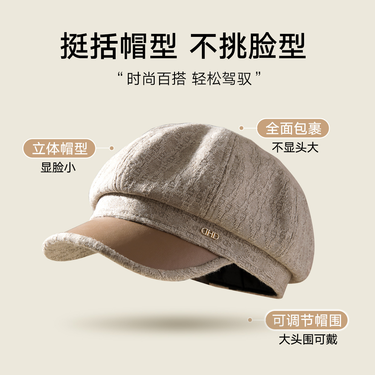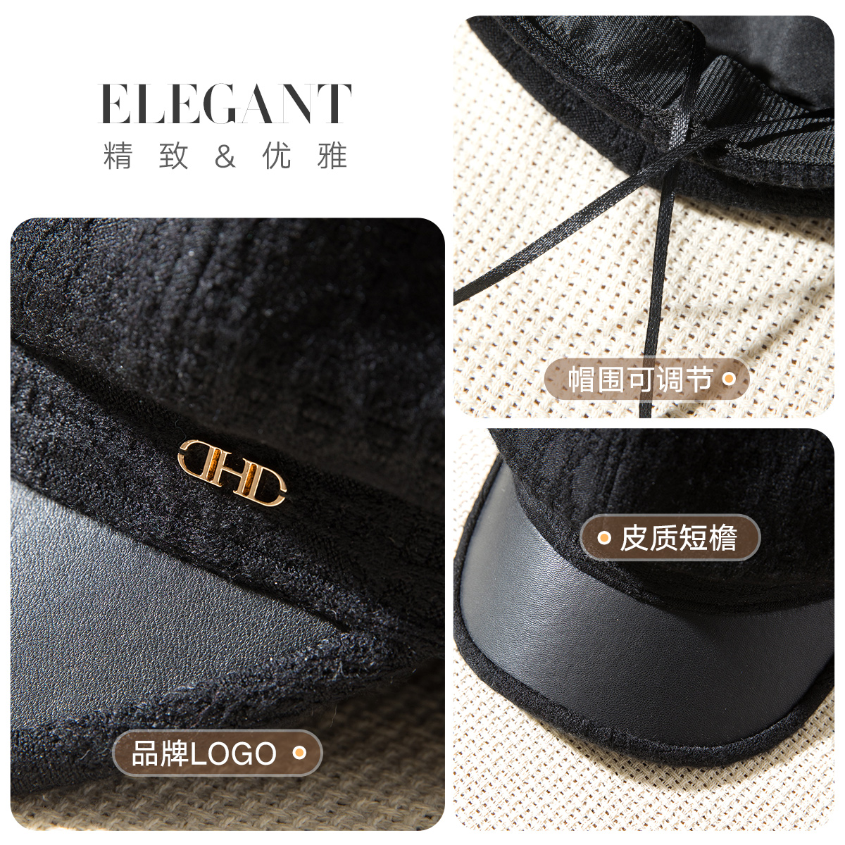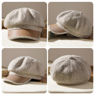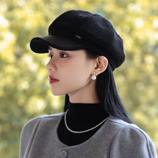 棒球帽 秋冬女士显脸小高级感八角帽保暖24新款 宏达 甜酷八角帽