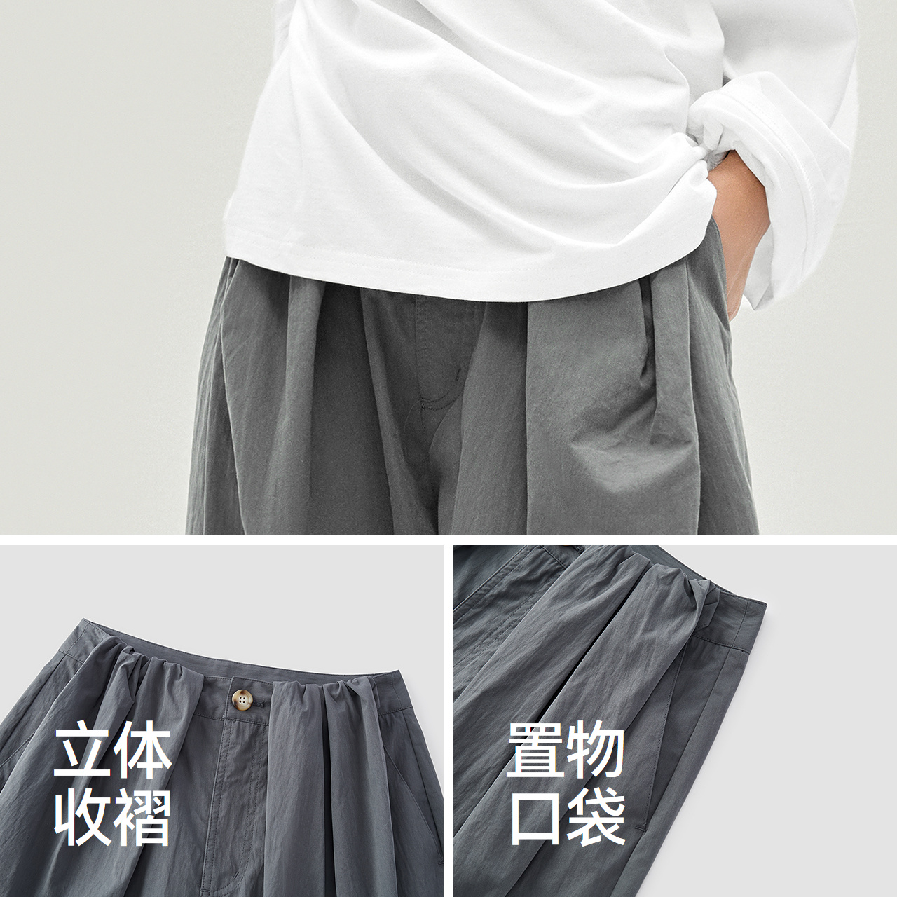 肌理宽松弧形灰色长裤 森马休闲裤 新款 显瘦慵懒2025秋季 女气球裤