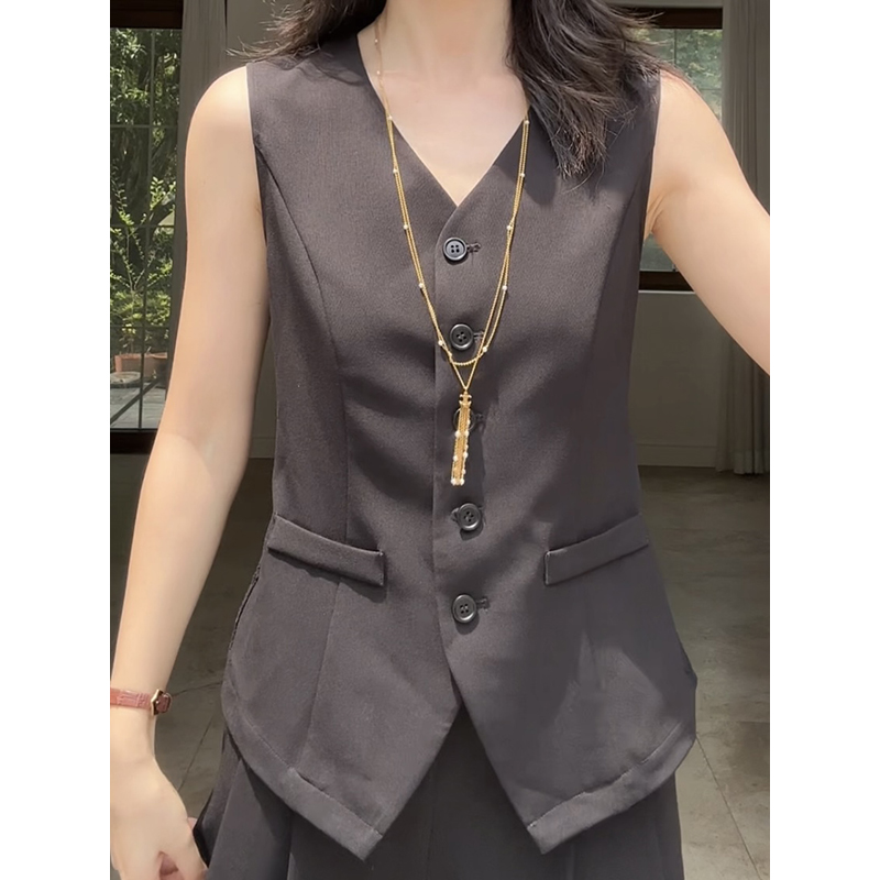 显瘦百褶裙裤 新款 半裙 上衣女夏季 郭九九呢气质v领微透蕾丝无袖