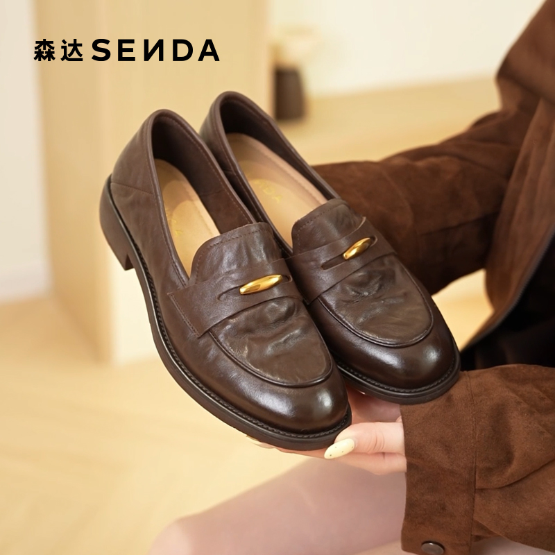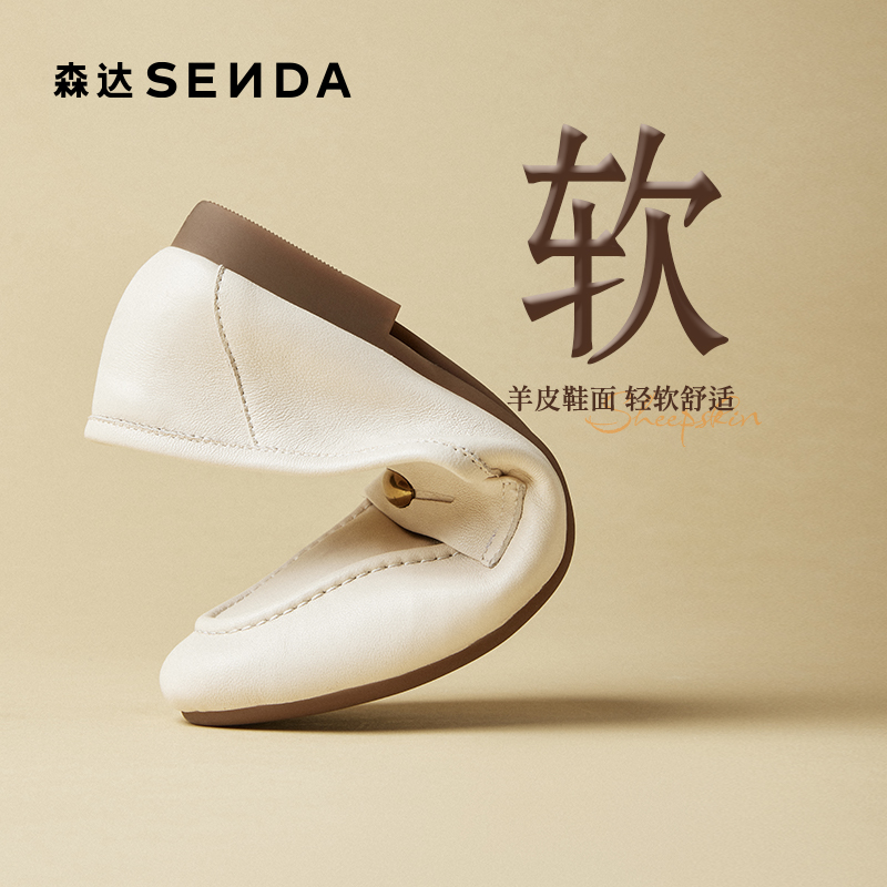 女鞋 森达超软小羊皮秋新小金豆乐福鞋 厚底平底单鞋 双11预售