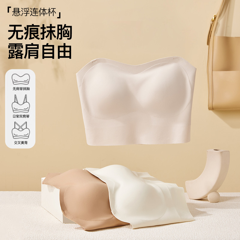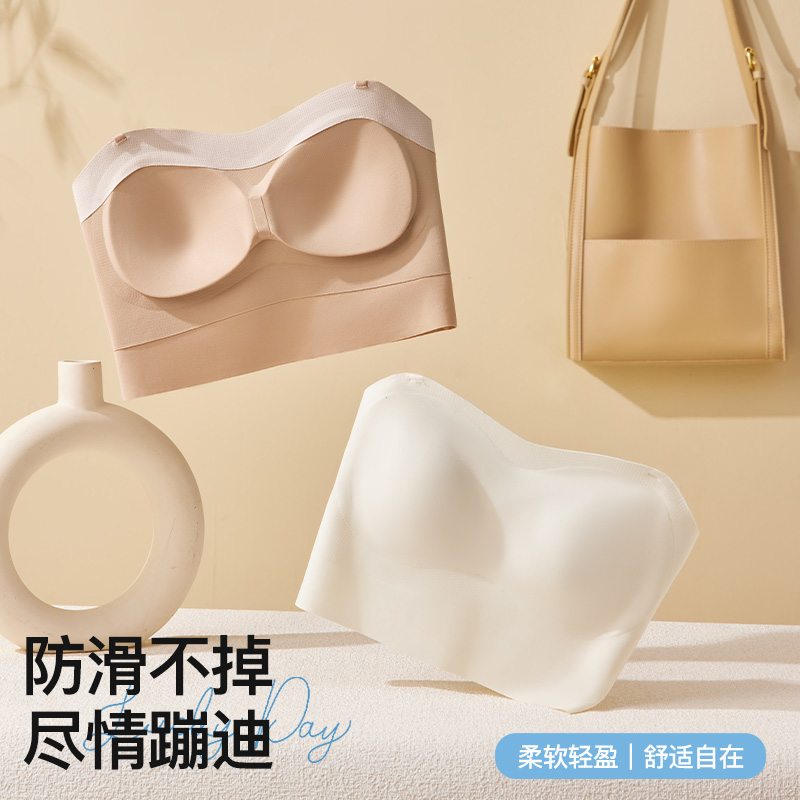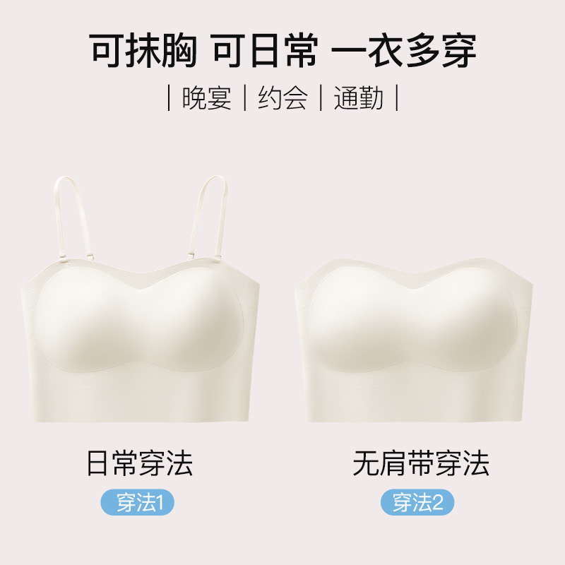 猫人抹胸内衣无肩带背心内搭防走光一片式 聚拢承托带胸垫上衣文胸
