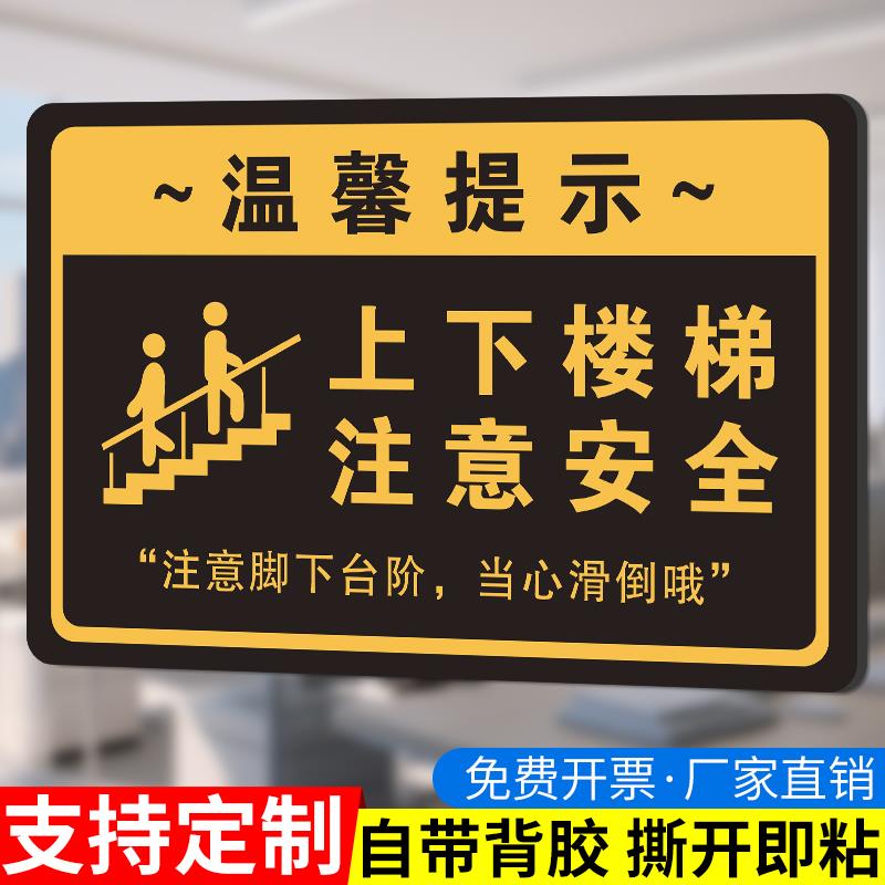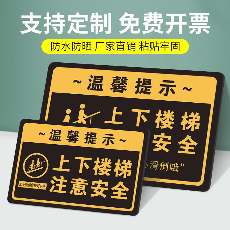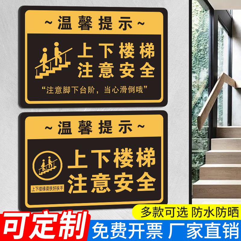 上下楼梯注意安全提示贴楼梯警示贴注意脚下防止摔倒安全提示牌当心跌倒温馨提示亚克力标识牌 可定制