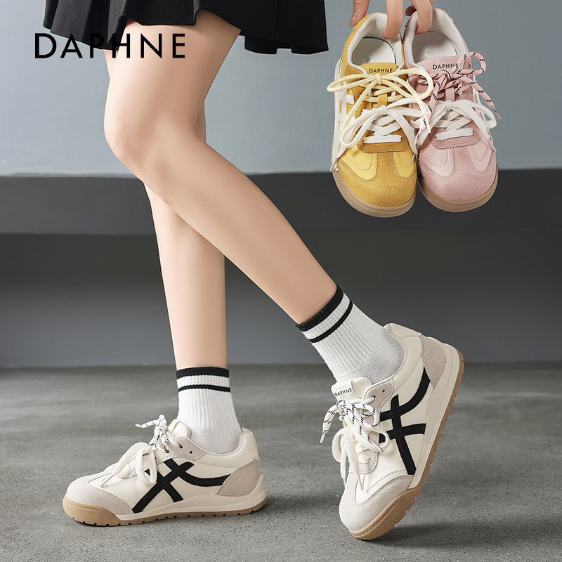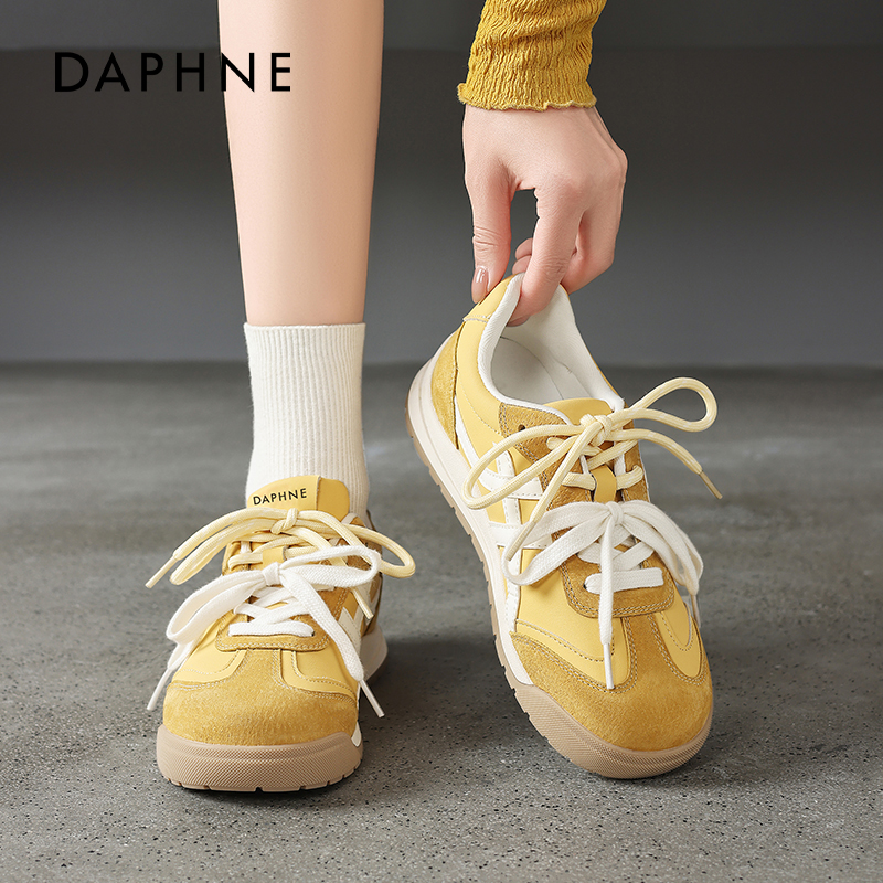 女款 阿轻便甘鞋 2025新款 运动休闲经典 秋季 达芙妮黄色内增高德训鞋