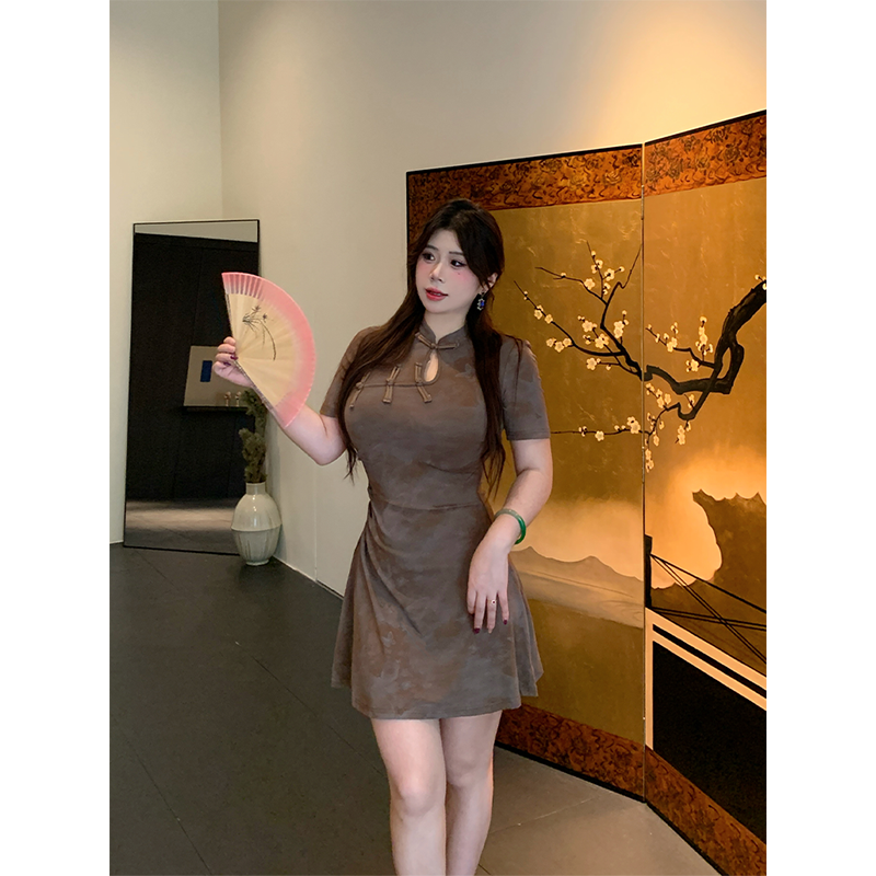 t恤女旗袍连衣裙法式 新中式 小众设计感短袖 夏季 一裙一衣潮 情侣装
