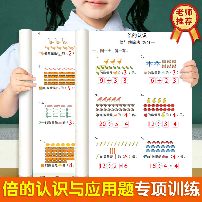北师大版 倍 苏教版 画线段应用题三年级上下册人教版 本通用专项训练作业本 认识练习题小学数学专项训练求倍数计算乘除法看图列算式