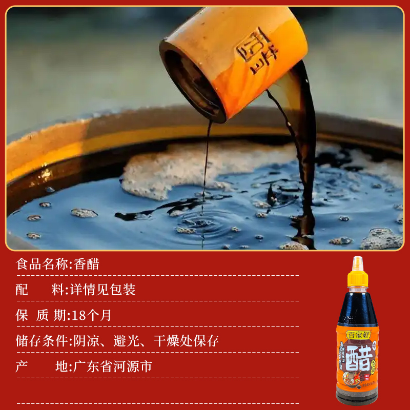 百家鲜香醋450ml凉拌蘸料调料酿造食醋家用厨房酸辣粉调味品食材