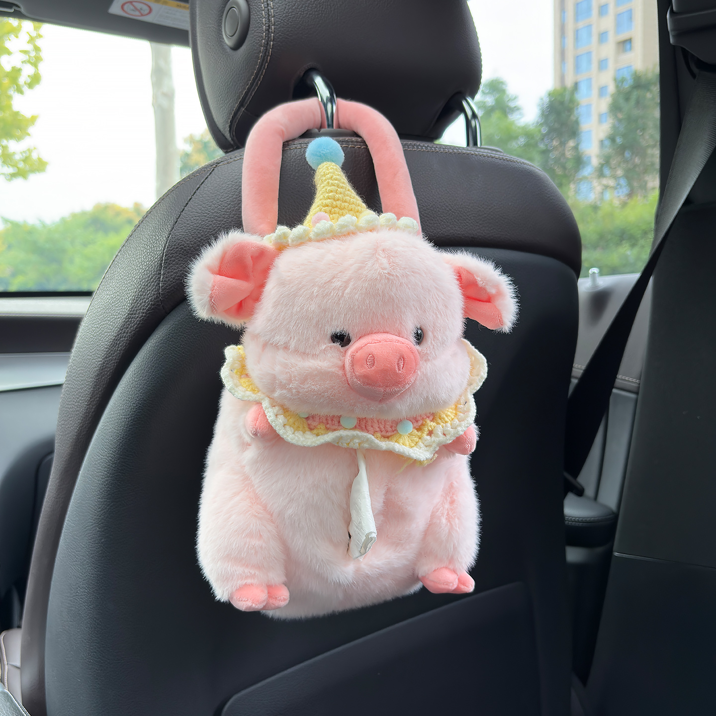 车载纸巾盒创意玩偶小猪小象车内纸巾挂袋汽车座椅背悬挂式 抽纸盒