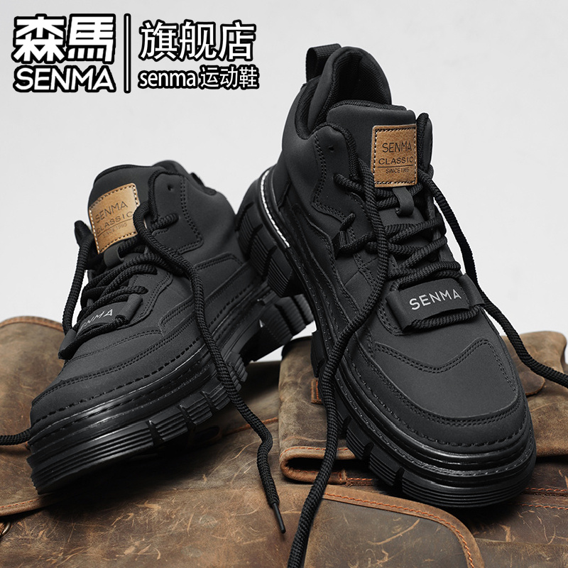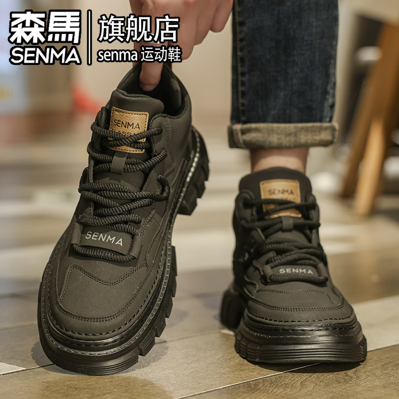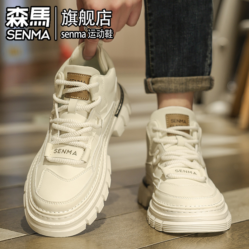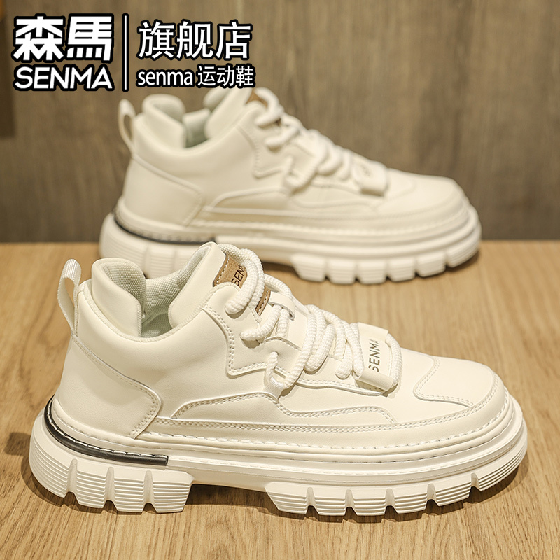 靴子 真皮运动厚底增高工装 森马马丁靴男秋季 高帮百搭休闲白色板鞋