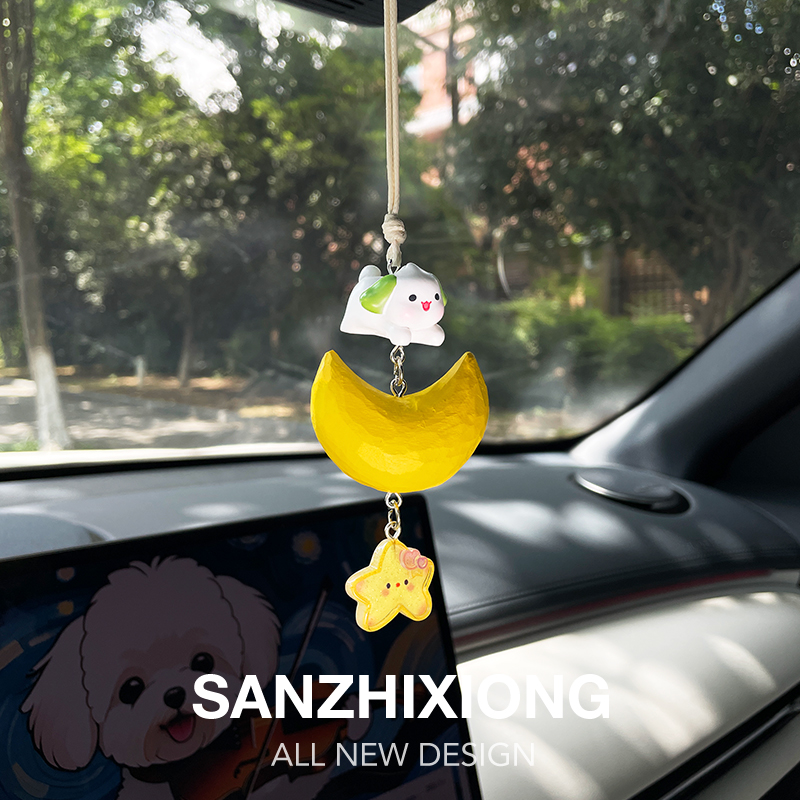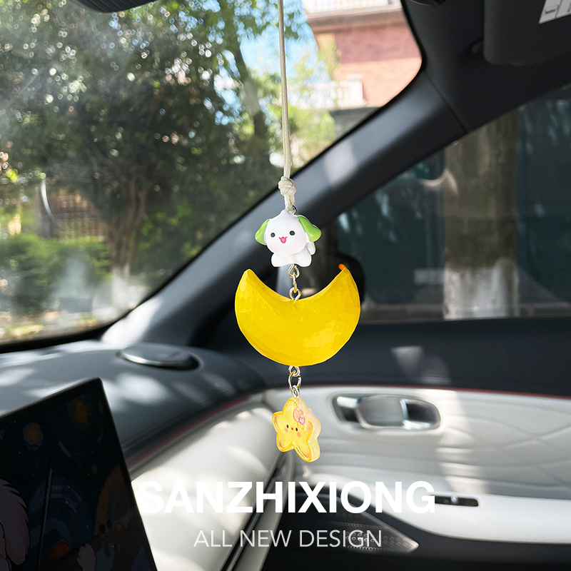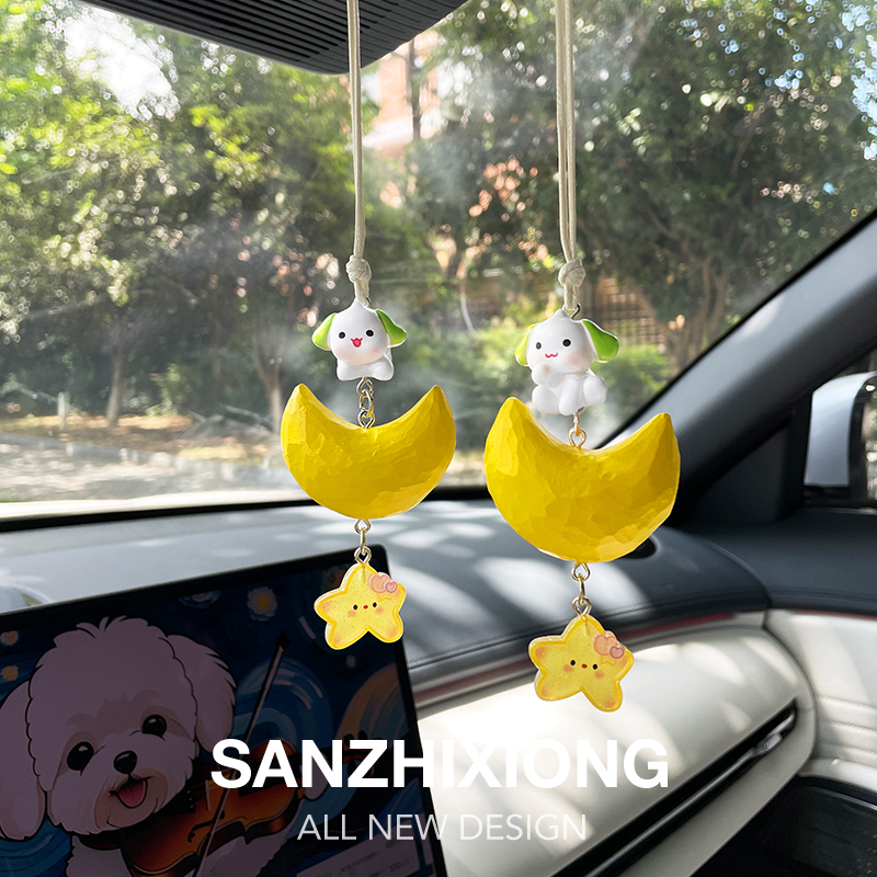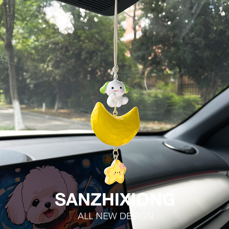可爱小狗月亮汽车挂件车内后视镜装 饰吊坠车内挂饰品女车载挂饰品