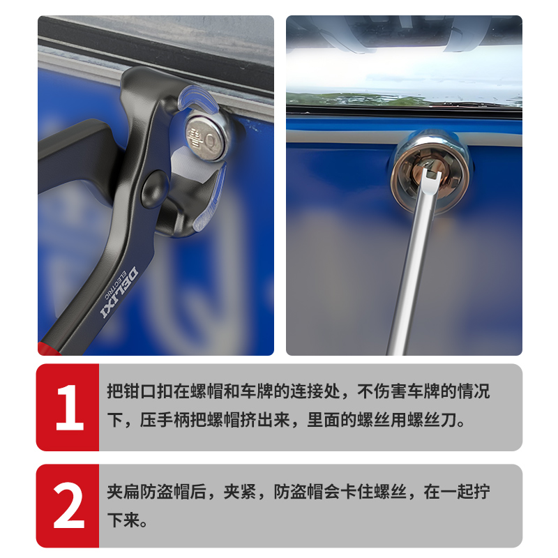 德力西电气拆车牌螺丝刀汽车上牌照防盗螺丝钉拆卸工具防盗扣拆除
