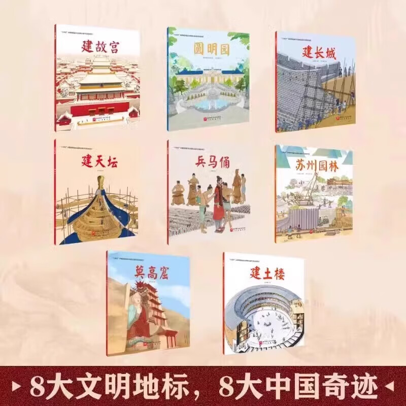 中国奇迹给孩子 12岁儿童全景式 古建筑解剖书全8册平装 建筑历史百科绘本建故宫圆明园苏州园林建天坛兵马佣建土楼 版 伟大