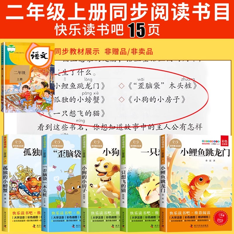 快乐读书吧二上2阅读书籍孤独小螃蟹小狗小房子歪脑袋木头桩一只想飞 课外书注音版 猫 小鲤鱼跳龙门二年级上册必读正版 全套5册