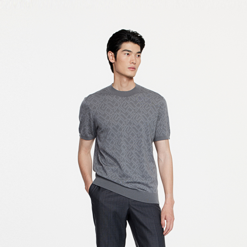 │HTLE3707 圆领花型纯羊毛针织T恤衫 劲霸男装 秋季