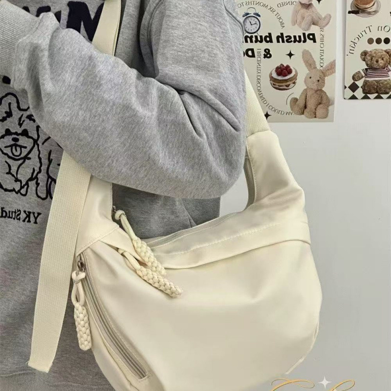 新款 2025ins日系饺子包女休闲百搭少女斜挎包纯色上课通勤单肩包s