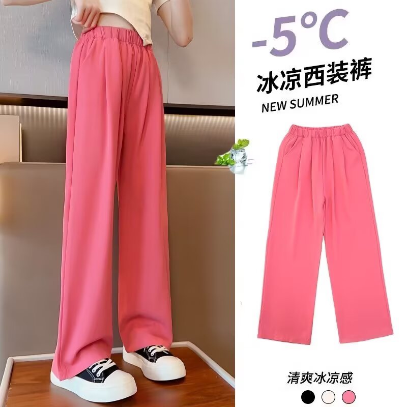 西装 直筒裤 儿童中大童装 女童裤 阔腿长裤 薄款 2025窄版 速干 子夏季