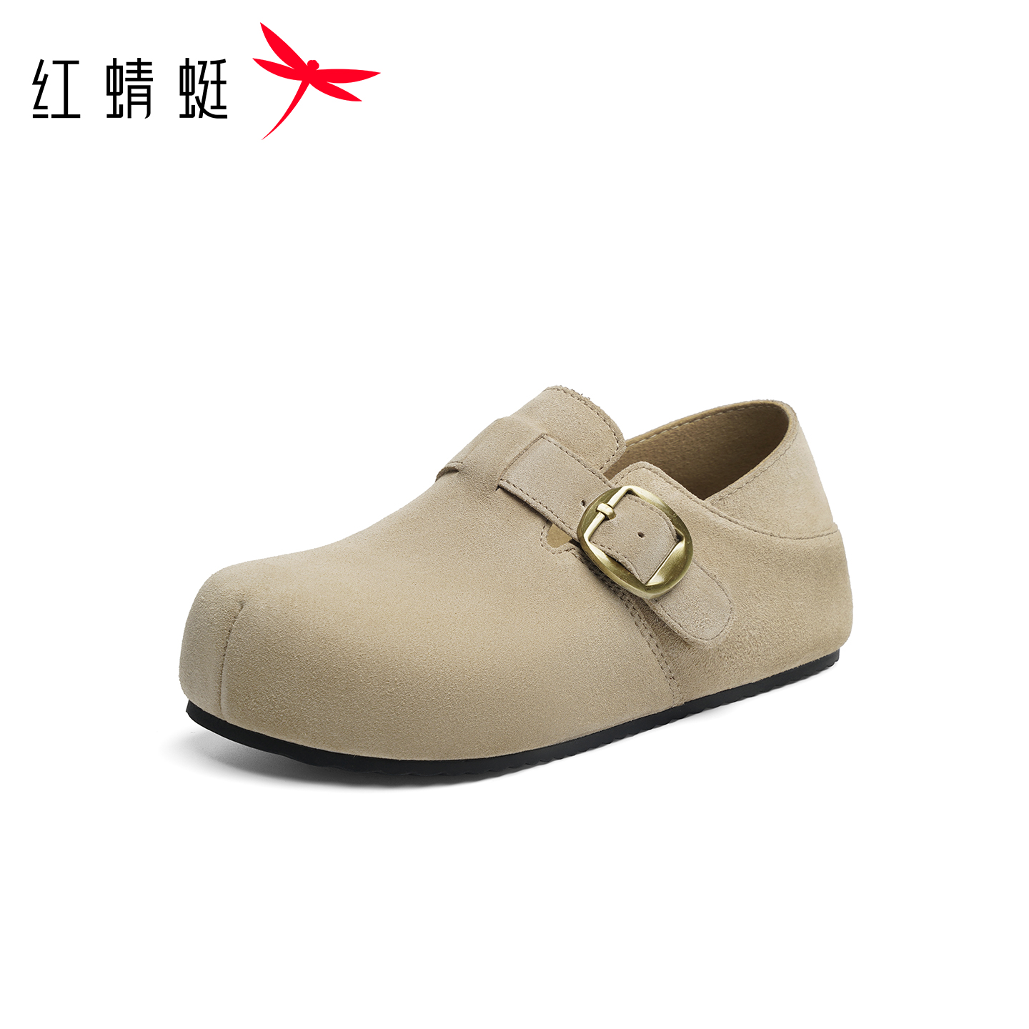 女2025秋季 复古休闲鞋 新款 一脚蹬单鞋 女鞋 红蜻蜓可露丽厚底勃肯鞋