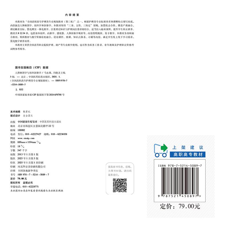 第3版 社 马永臻 中国医药科技出版 9787521450897 冯晓灵 人体解剖学与组织胚胎学
