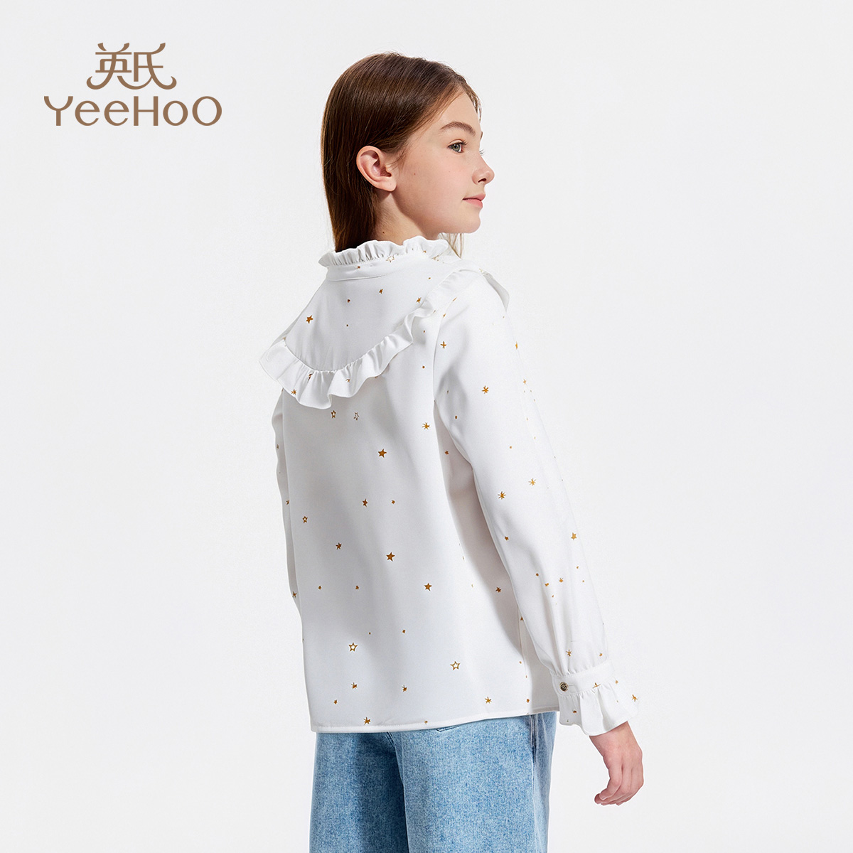 衬衣百搭小衫 英氏女童花边衬衫 花苞领纯棉长袖 新款 上衣 2025年秋装