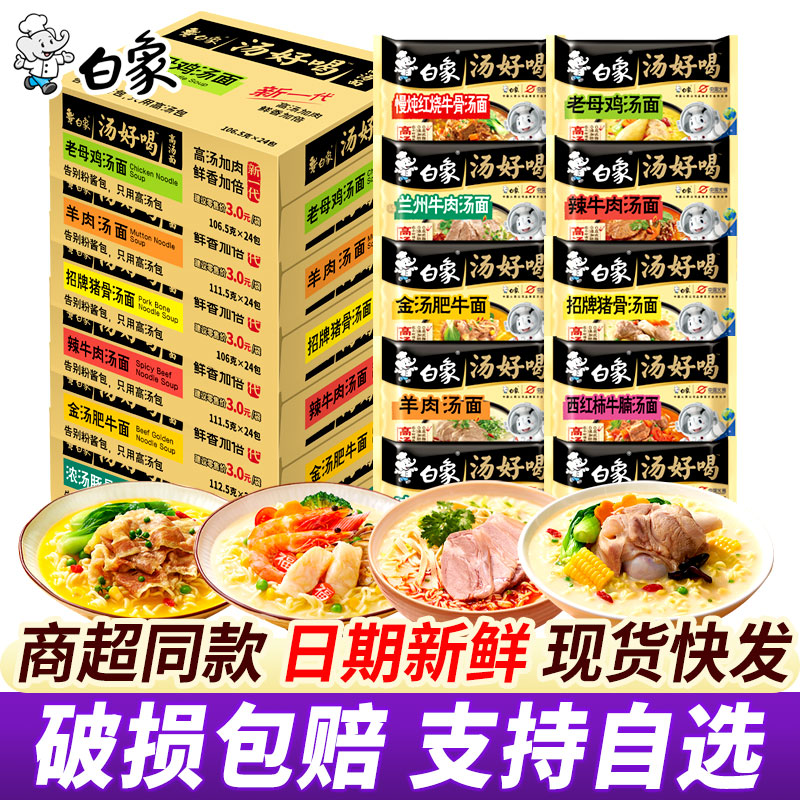 白象整箱方便面24袋装 汤好喝多一半老母鸡猪骨汤面混合多口味泡面
