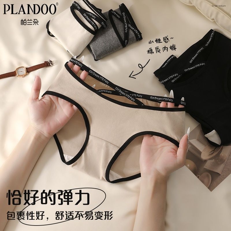 帕兰朵简约字母交叉镂空细腰带全包裹不夹臀薄款 舒适纯棉少女内裤