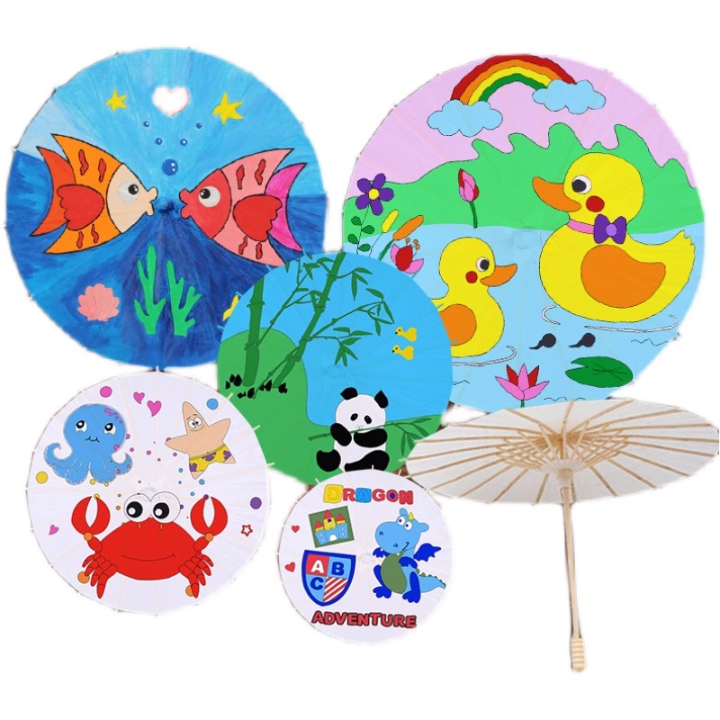 重阳节非遗空白手工油纸伞diy材料包幼儿园儿童手绘填色彩绘涂鸦