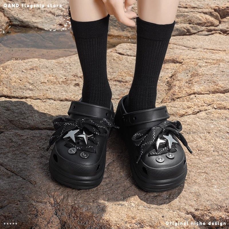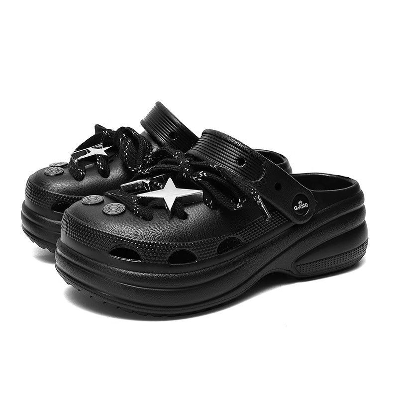 户外防滑沙滩鞋 朴西奶酪情侣厚底踩屎感洞洞鞋 包头拖鞋 夏季 男 女款
