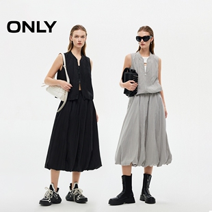 ONLY2025冬季 机能风花苞A字纯色伞裙显瘦显高中长裙半身裙女 新款