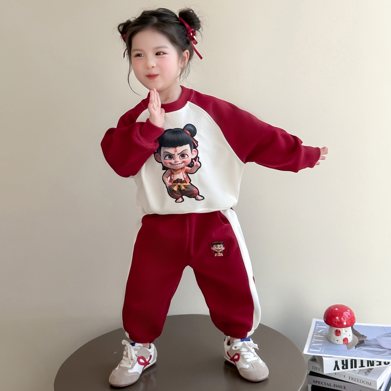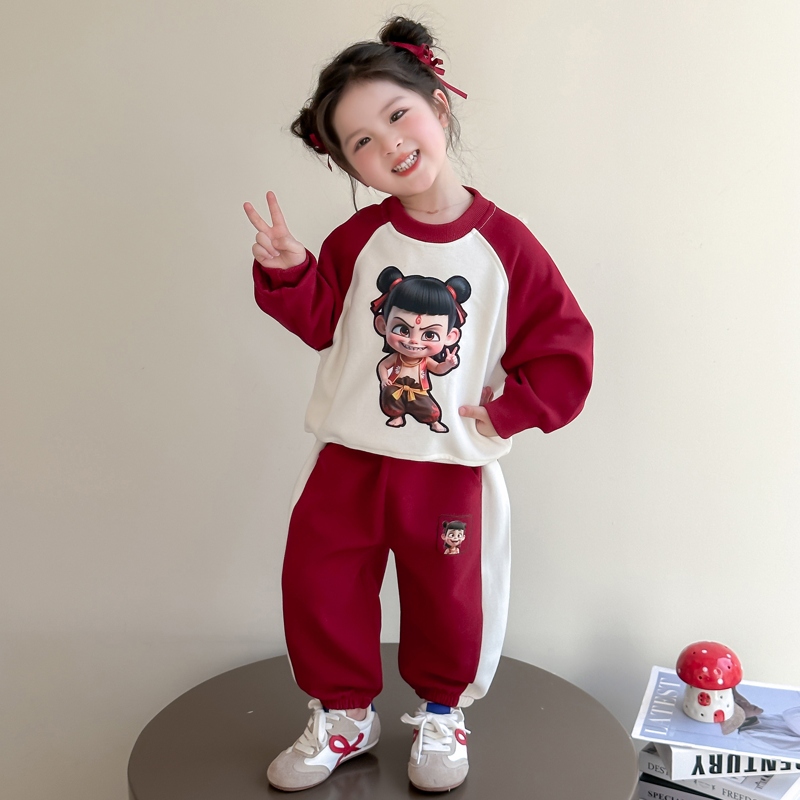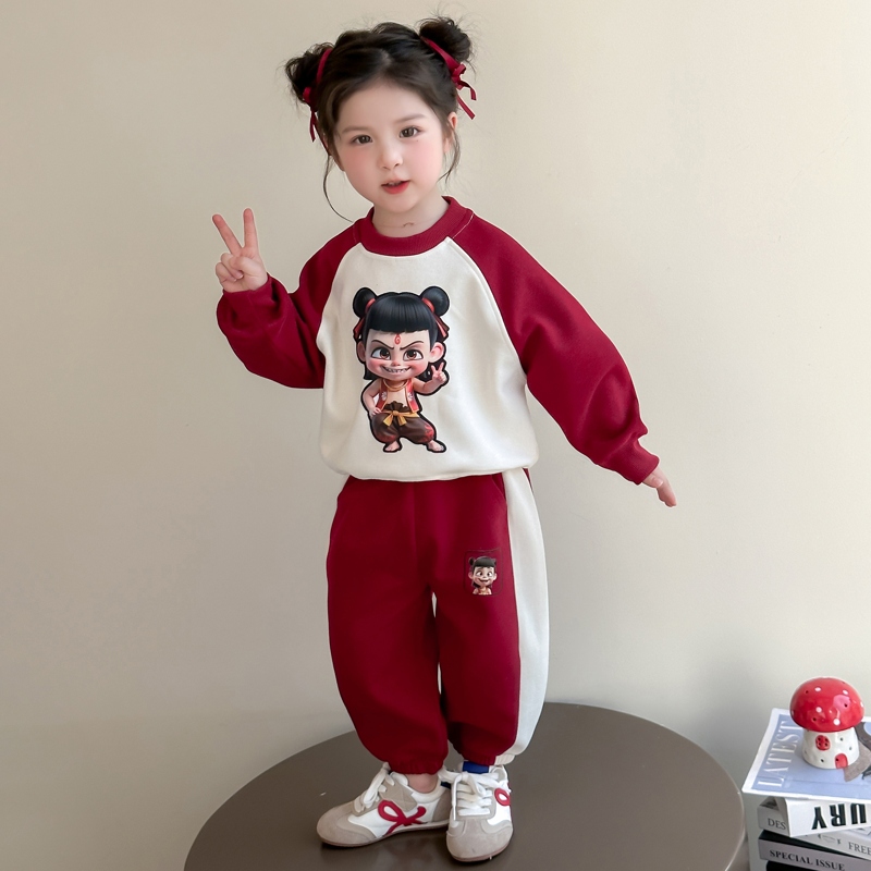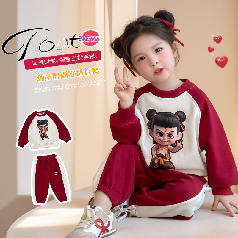 儿童超好看春秋宝宝炸街好看衣服 2025款 女童潮酷哪吒服装 运动套装