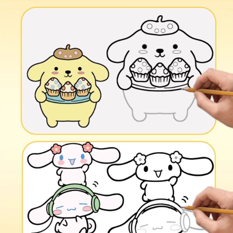玉桂狗动漫线稿临摹画册儿童手绘画画描摹卡通涂色描画简笔画