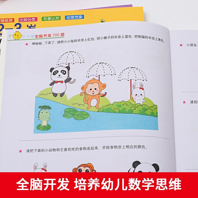 幼儿园智力数学小班左右脑思维逻辑训练书迷宫专注力找不同练习册 6岁学前教育益智奥数启蒙早教推荐 全脑开发700题1000题儿童2