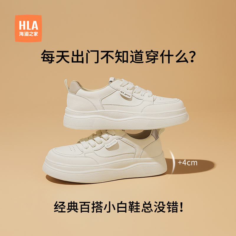 轻便厚底舒适百搭运动休闲板鞋 HLA 秋季 女2025新款 海澜之家小白鞋