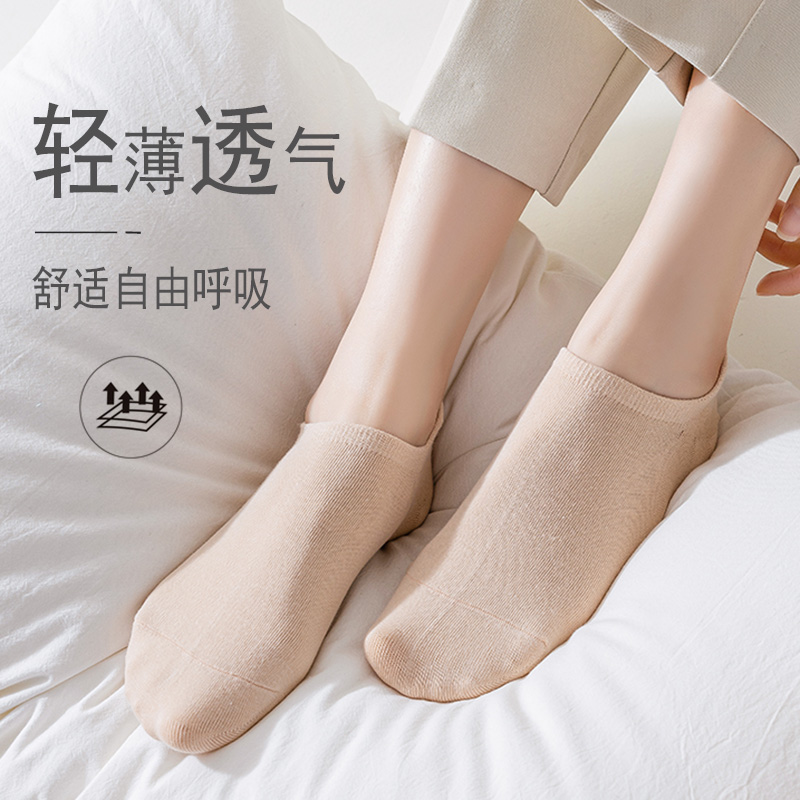 纯棉船袜子女春秋季 透气隐形袜无骨 不掉跟硅胶防滑短袜浅口夏薄款