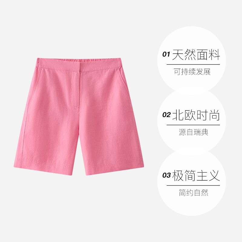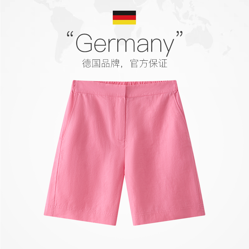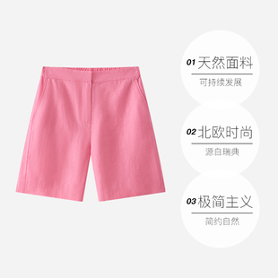 Marc Polo2025夏季 新款 女宽松 粉色系简约亚麻休闲短裤 自营