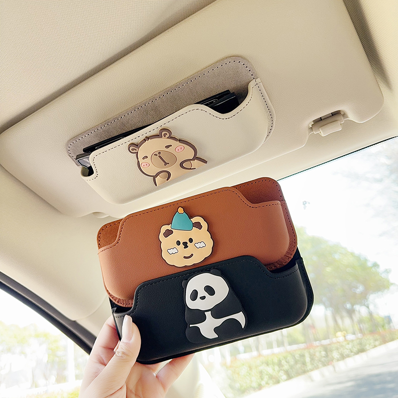 汽车遮阳板收纳神器可爱卡通证件卡片票据夹车载眼镜夹多功能车用