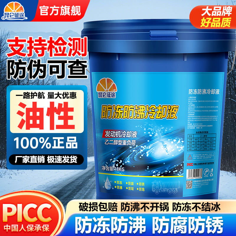 昆仑征途发动机防冻液18KG高浓度防冻液冬天冷却液四季 通用大桶装