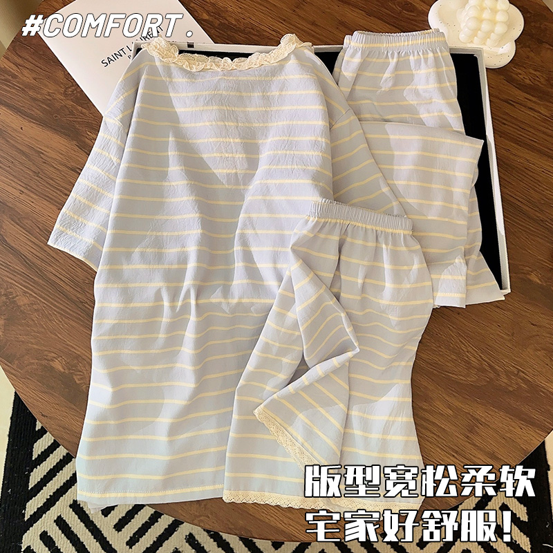 可爱小企鹅云朵棉三件套装 短袖 家居服 天2025新款 带胸垫睡衣女夏季