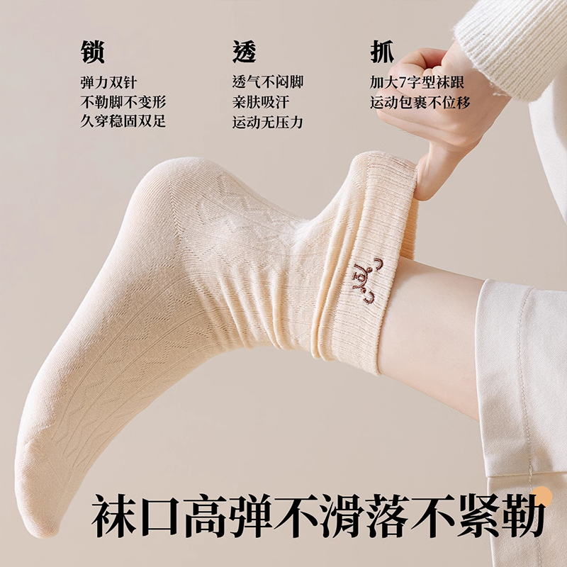 棉伙棉伴海藻袜舒适抗菌防臭男女商务运动纯色裸感中筒袜