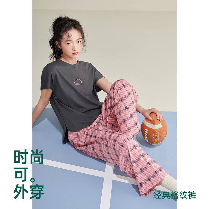 夏款 纯棉睡衣女夏季 简约宽松短袖 长裤 家居服 安之伴 套装 巨凉感