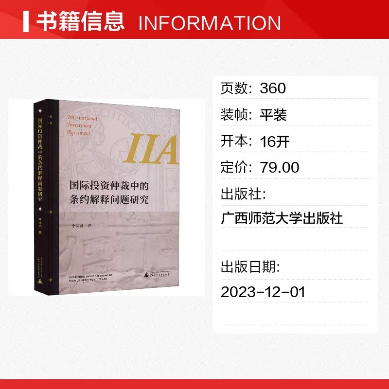 图书籍 社9787559865977 条约解释问题研究 国际法经管 励志 著 国际投资仲裁中 李庆灵 广西师范大学出版 正版 新华书店正版 包邮