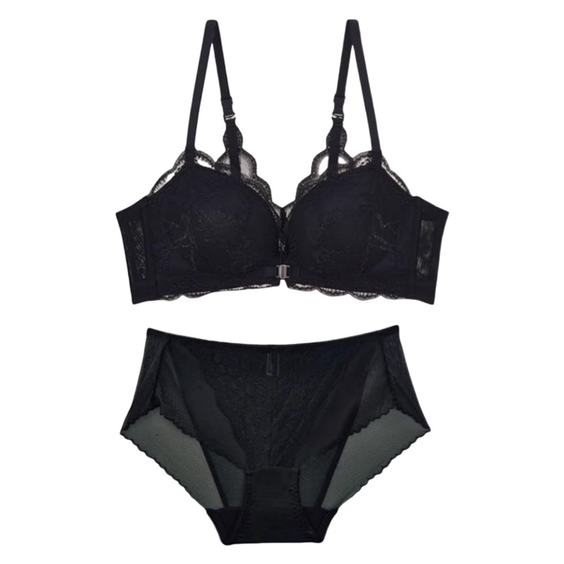 好奇蜜斯小胸聚拢内衣女薄显大无钢圈蕾丝文胸罩套装 防下垂夏 法式