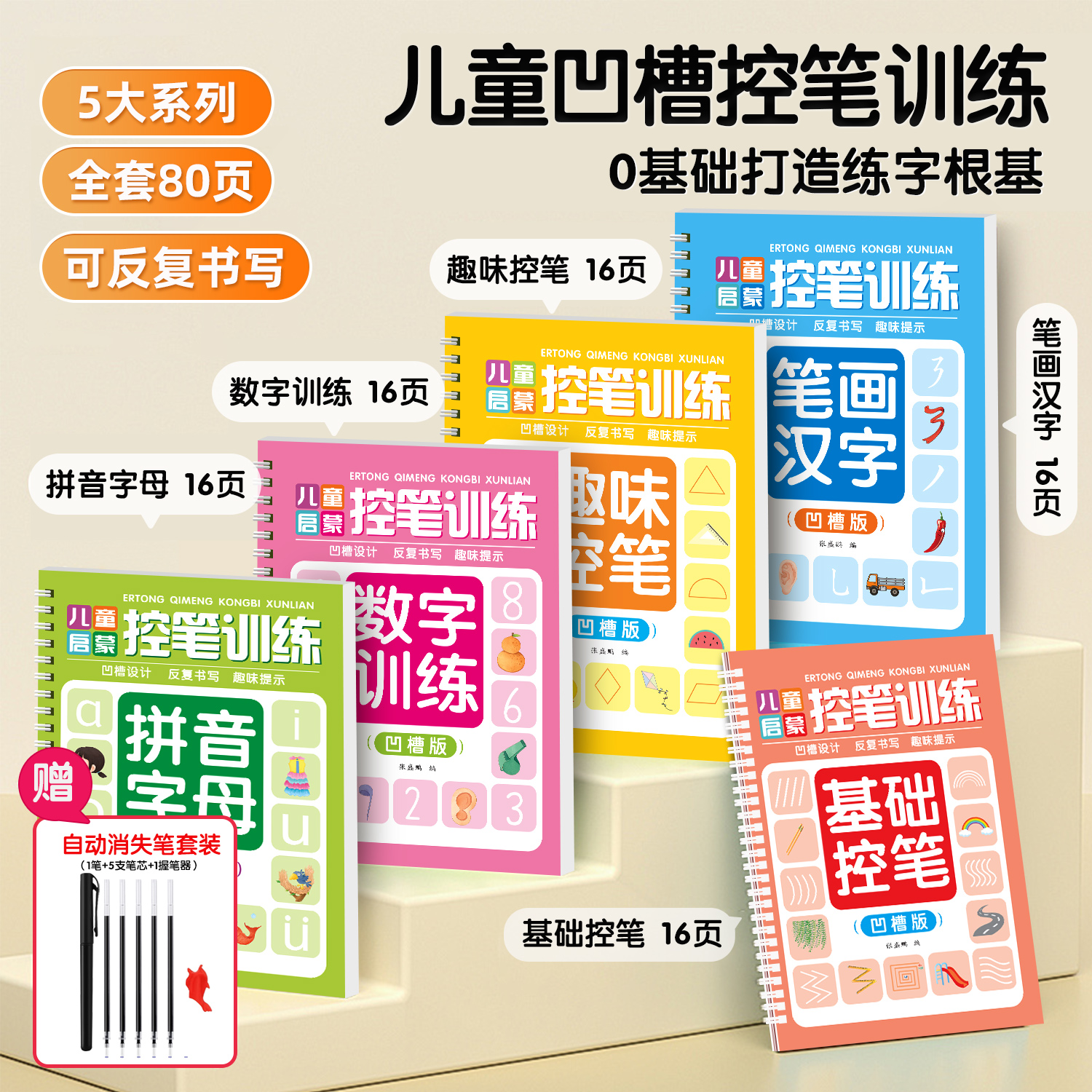 数字练字帖凹槽控笔训练字3 6岁小中大班幼儿园学前班拼音汉字每日一练学前宝宝练字描红本初学者写字学字绘画幼小衔接启蒙练习册