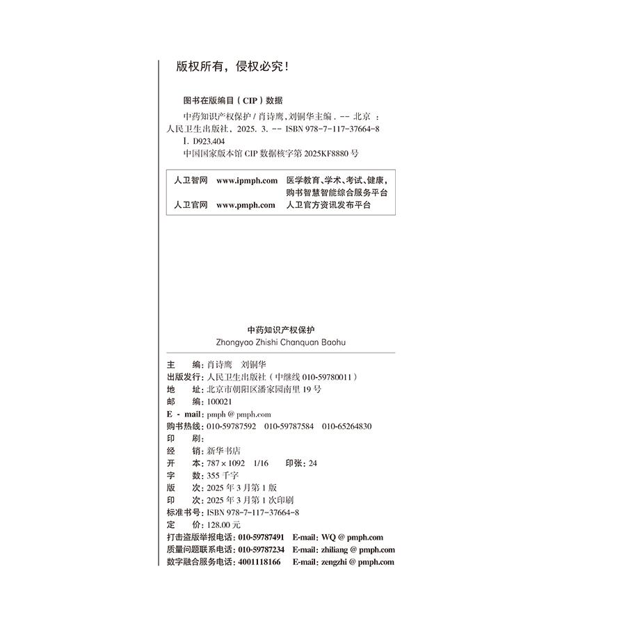 涵盖了各类知识产权侵权行为 识别和处理 为读者提供了全面 中药知识产权保护 人民卫生出版 刘铜华 侵权判定知识体系 社 肖诗鹰