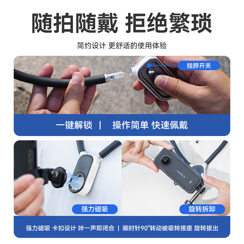 XFJI x3磁吸挂脖支架运动相机x2胸前固定骑行支架钓鱼开箱第一人称视角vlog视频拍摄配件 适用影石Insta360x4
