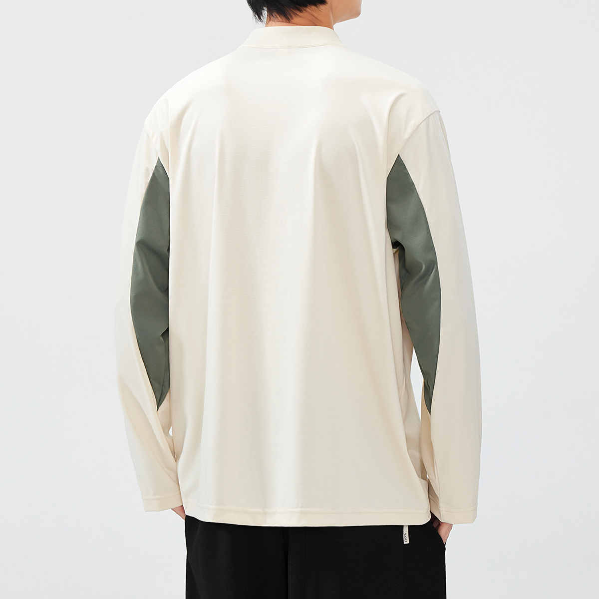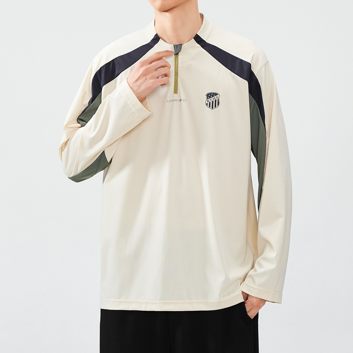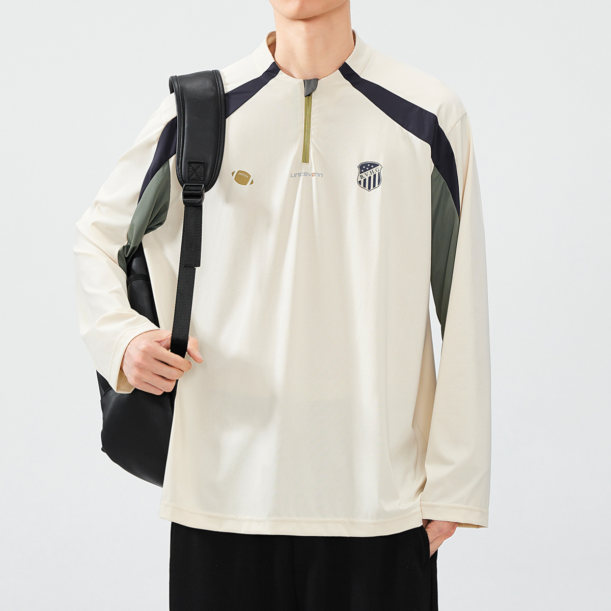 2025夏季 T恤男款 复古印花弹力上衣 户外拼色速干半拉链长袖 hansca