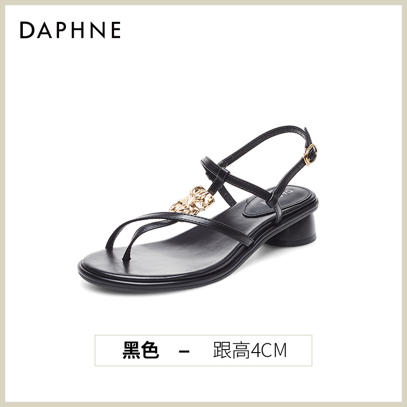 复古金属扣凉拖鞋 达芙妮绝美夹趾粗跟罗马凉鞋 法式 2025新款 女夏季